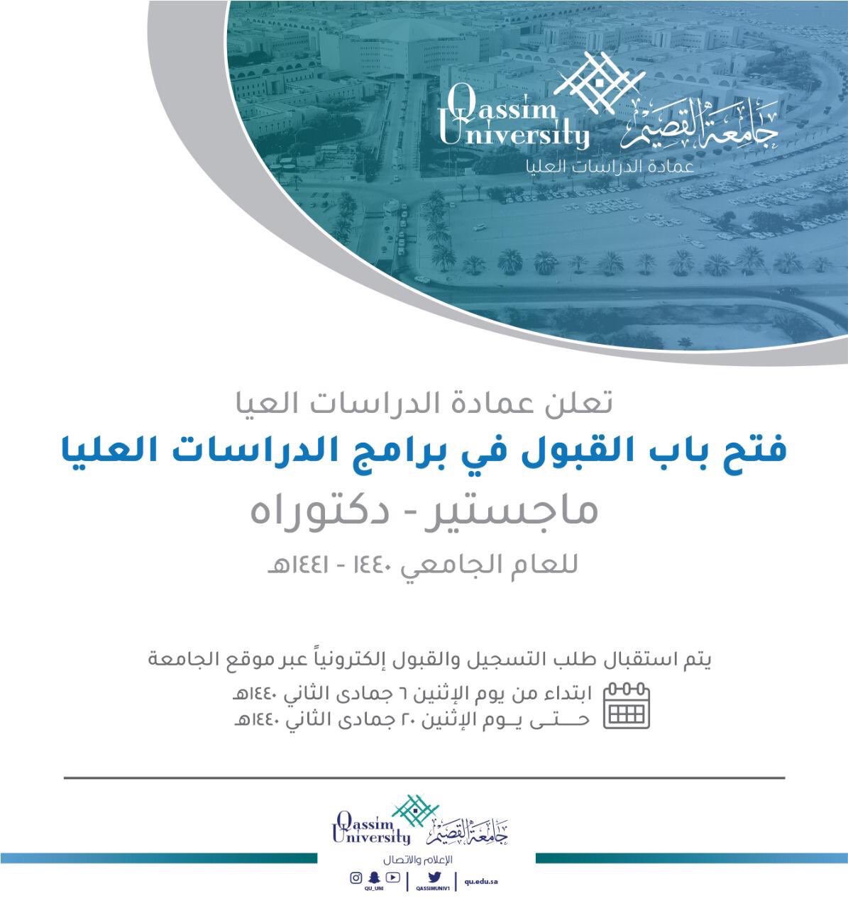 عمادة الدراسات العليا On Twitter تعلن عمادة الدراسات العليا في جامعة القصيم عن فتح باب التسجيل في برامج الماجستير والدكتوراه عبر الرابط التالي Https T Co Vywqusi5oy Https T Co Hb0mvj6uht