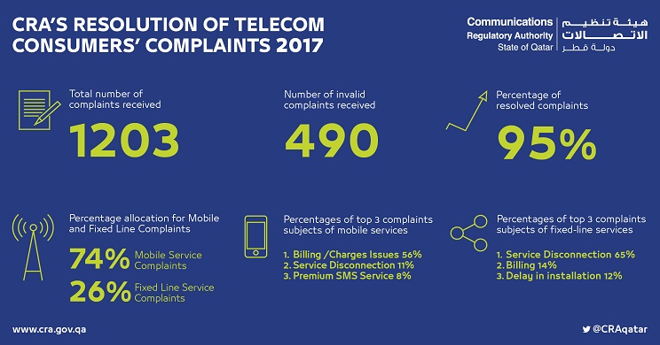هيئة تنظيم الاتصالات تنجح في تسوية 95 من شكاوى مستهلكي خدمات الاتصالات في عام 2017